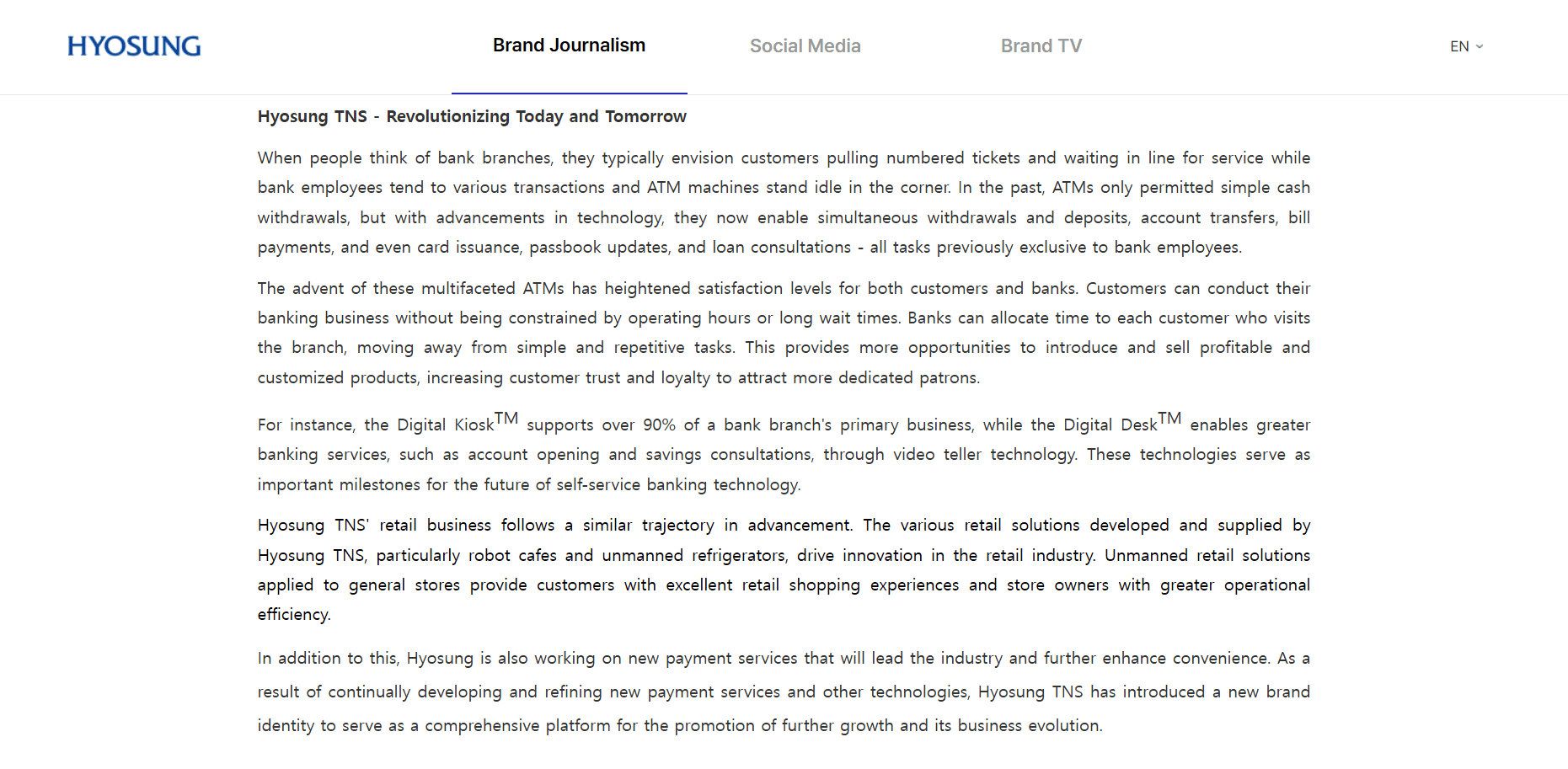 backlinks to Hyosung's Worldwide brand journalism landing page.