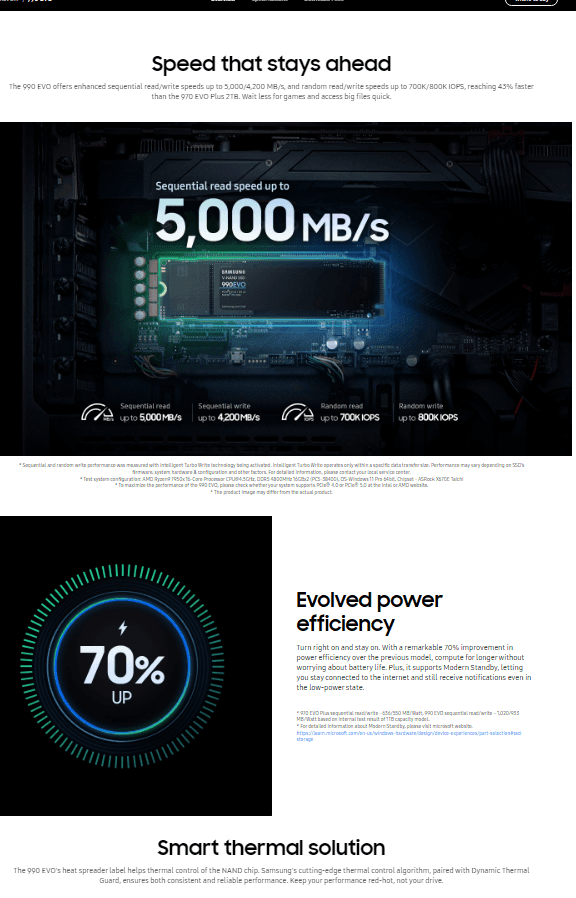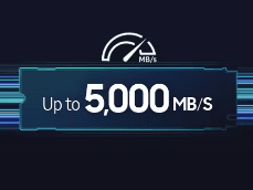 Upgrade to faster sequential speed up to 5,000 MB/s, reaching 43% faster than the previous model.