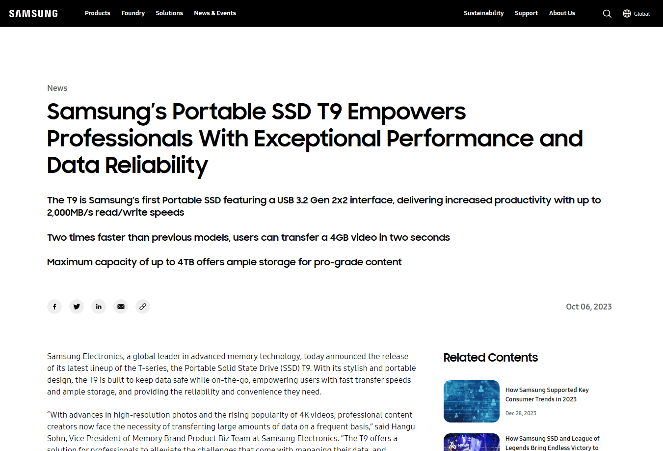 Samsung Electronics releases the latest line up of the T-series (T9) in their portable SSD lineup