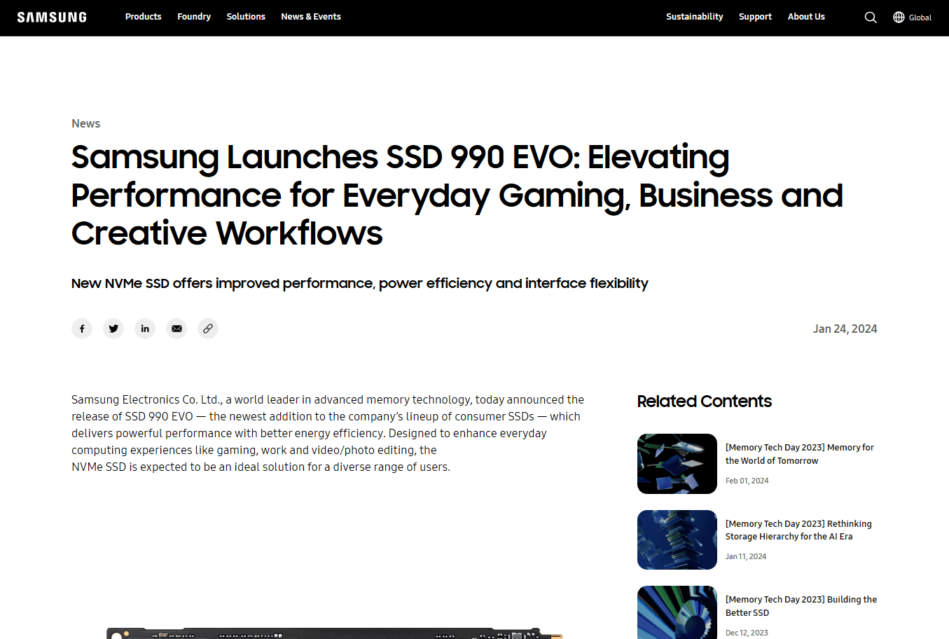 Samsung releases the 990 EVO, an internal SSD for everyday use