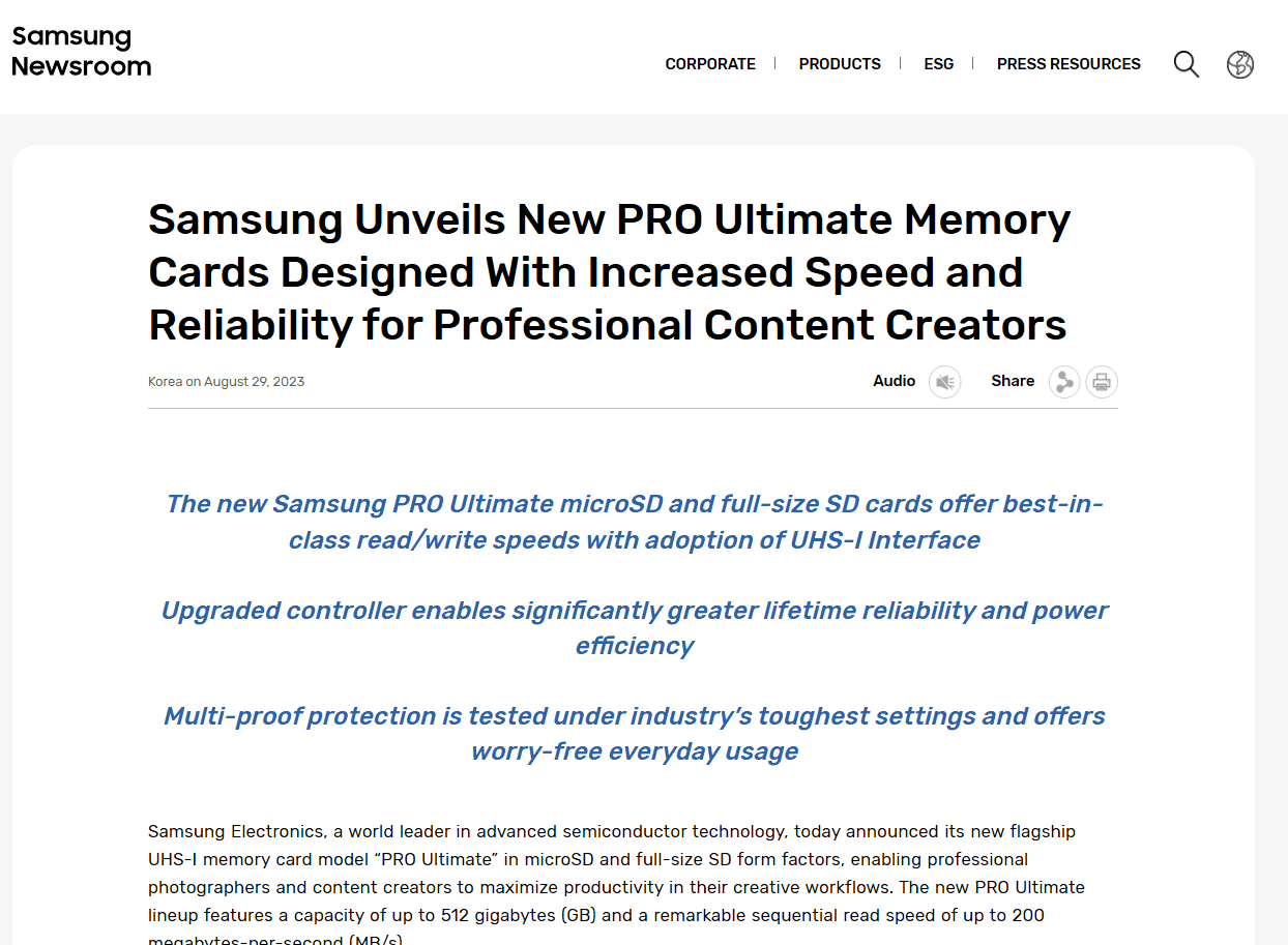 Samsung Electronics releases a new memory card, the PRO Ultimate, which includes both microSD and regular SD card.